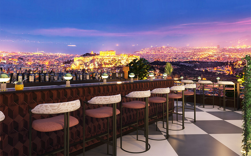 Το πιο ελκυστικό κομμάτι του κτηρίου θα είναι το εντυπωσιακό roof top bar – εστιατόριο, με θέα την Ακρόπολη, το οποίο υπόσχεται να γίνει ένα από τα πιο σύγχρονα hotspots της Αθήνας. Οι επισκέπτες θα έχουν την ευκαιρία να γευτούν ένα συναρπαστικό menu Nikkei, συνδυάζοντας αρμονικά τις γεύσεις της ιαπωνικής και περουβιανής κουζίνα, μαζί με μια εντυπωσιακή επιλογή δημιουργιών mixology και εκλεκτών κρασιών. Το roof top απλώνεται σε τρία επίπεδα και περιλαμβάνει το rooftop raw bar, όπου προσφέρει ιαπωνικό σούσι και περουβιανό ceviche, το εσωτερικό bar και κουζίνα, που περιβάλλεται από ένα ζεστό και άνετο lounge χώρο, καθώς και τον prive χώρο με υπέροχη θέα. Ζωντανή μουσική και επιλεγμένα DJ set δημιουργούν το ιδανικό υπόβαθρο για αξέχαστες βραδιές στο κέντρο της Αθήνας.
