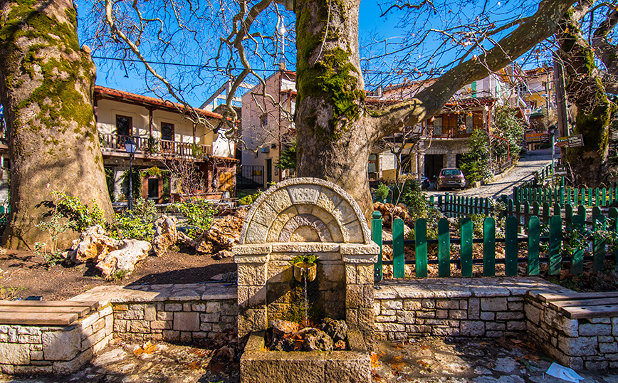 Στο μεγαλύτερο τμήμα του το χωριό είναι πετρόχτιστο, με όμορφα και προσεγμένα κτίρια με κόκκινες κεραμιδοσκεπές και περιποιημένα πέτρινα καλντερίμια. Σημείο αναφοράς για το χωριό αποτελεί η κεντρική πέτρινη πλατεία με την χαρακτηριστική βρύση και τα πανύψηλα πλατάνια. Από εδώ, μάλιστα, ξεκινάει και το μικρό μονοπατάκι που οδηγεί στον καταρράκτη του Επταλόφου, συμβόλου και ενός από τα πιο δημοφιλή αξιοθέατα για το χωριό.