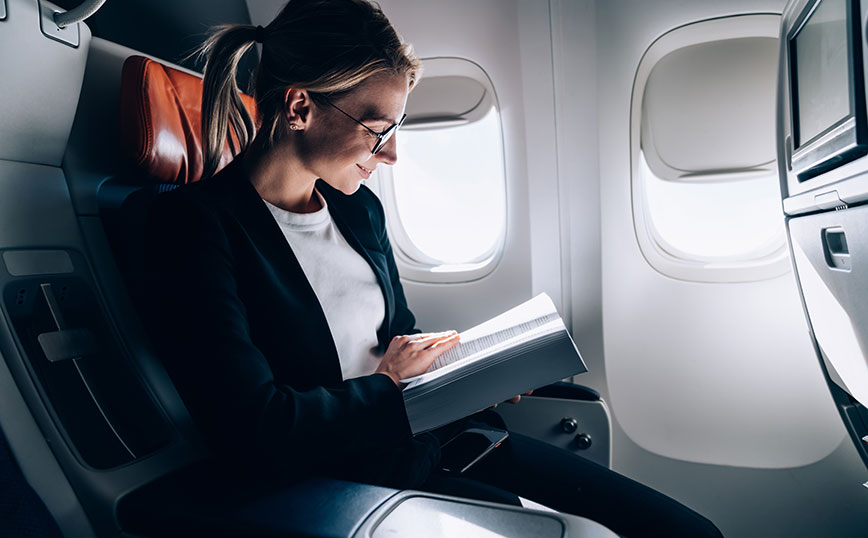 «Μέχρι την πέμπτη ώρα της πτήσης μου για το Τόκιο, τα μάτια μου είχαν κουραστεί από τις οθόνες των θέσεων και ήθελα ένα βιβλίο», αναφέρει η ίδια. Μέσα από την 12ωρη εμπειρία της κολλημένη σε μια αεροπορική θέση, η Monica Humphries γράφει για τα 3 απαραίτητα πράγματα που πρέπει να πάρει όποιος πρόκειται να ταξιδέψει για ώρες.