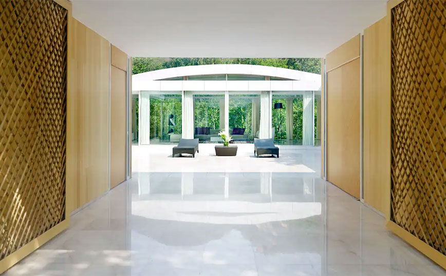 Ωστόσο, υπάρχει ένα κεντρικό κτίριο που χρησιμεύει ως χώρος υποδοχής, καθώς και ως έδρα των εστιατορίων του ξενοδοχείου. Οι υπάλληλοι θα μεταφέρουν τους επισκέπτες από το check-in στα καταλύματά τους με αμαξάκια του γκολφ γύρω από την εκτεταμένη ιδιοκτησία.
