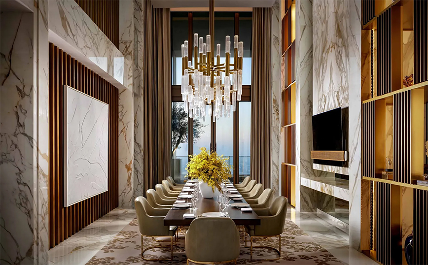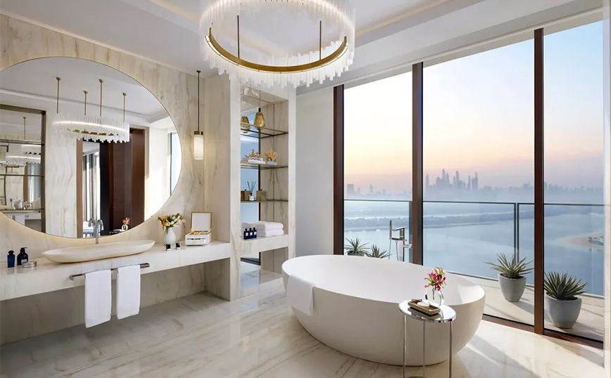 Κατά τον σχεδιασμό των σουιτών του ξενοδοχείου «Θέλαμε κάτι πολύ κομψό, πολύ μεγαλοπρεπές, πολύ πλούσιο -κάτι που να είναι καθολικά ελκυστικό» λέει στο AD ο Timothy Kelly, αντιπρόεδρος και διευθύνων σύμβουλος του Atlantis, Dubai. «Ελπίζαμε ότι οι επισκέπτες θα μπορούσαν να έρθουν και να νιώσουν σαν στο σπίτι τους».