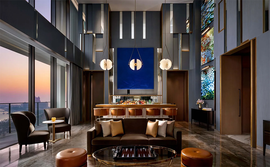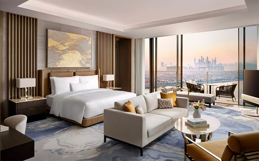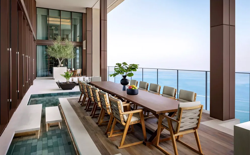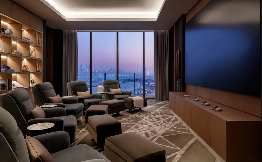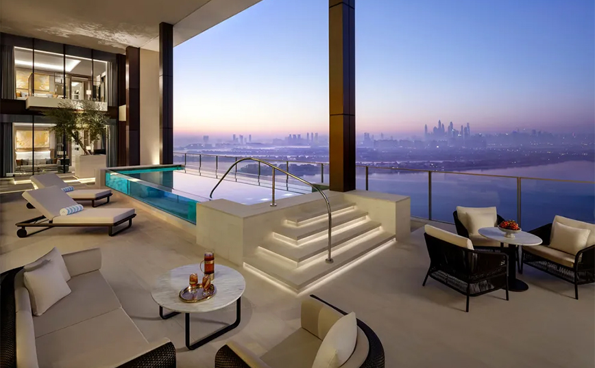 Σχεδιασμένη από το GA Group, η σουίτα περιλαμβάνει τέσσερα υπνοδωμάτια, ένα καθιστικό, μια τραπεζαρία, μια κουζίνα, ένα μπαρ και μια αίθουσα παιχνιδιών και ένα γραφείο σε δύο ορόφους, καθώς και μια βεράντα με πισίνα υπερχείλισης. Η σουίτα βρίσκεται στον 18ο και 19ο όροφο στην ουράνια γέφυρα του κτιρίου, προσφέροντας επιβλητική θέα από όλες τις γωνίες της σουίτας σε ορόσημα όπως το Burj Khalifa -το ψηλότερο κτίριο στον κόσμο-, το Ain Dubai και τον Αραβικό Κόλπο.