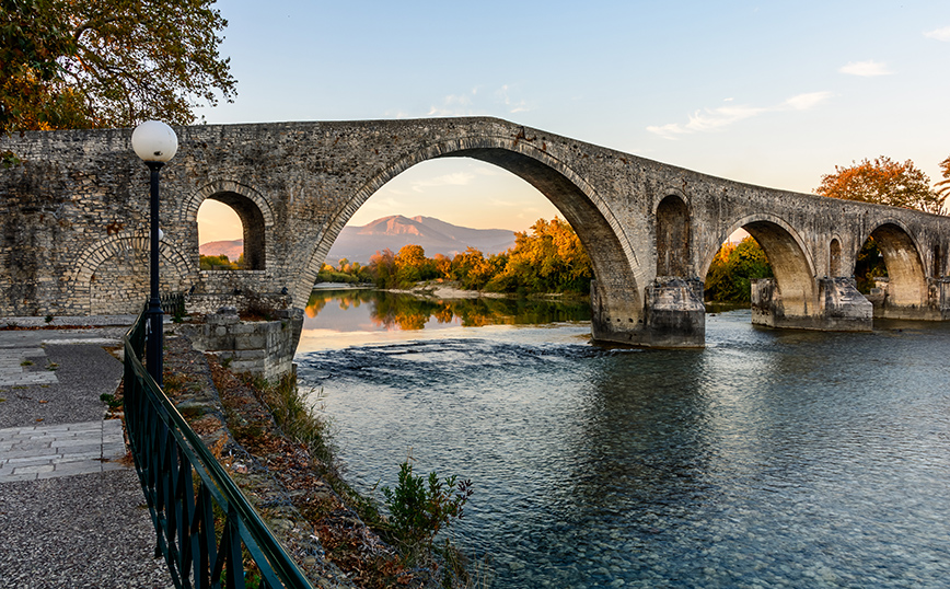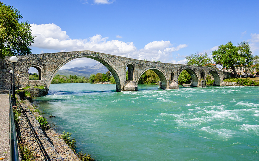 Η λιθόκτιστη γέφυρα του ποταμού Αράχθου αποτελεί ένα πραγματικό στολίδι και το δημοφιλέστερο αξιοθέατο της περιοχής της Άρτας. Το μήκος του φτάνει στα 145 μέτρα ενώ το πλάτος του είναι 3,75 μέτρα. Έχει τέσσερις ημικυκλικές καμάρες οι οποίες δεν έχουν συμμετρία μεταξύ τους. Εκτός από ένα μνημείο αρχιτεκτονικής, αποτελεί και ιστορικό μνημείο. Το 1881, όταν απελευθερώθηκε η Άρτα, το γεφύρι ήταν το σύνορο της ελεύθερης Ελλάδας με την τουρκοκρατούμενη Ελλάδα.