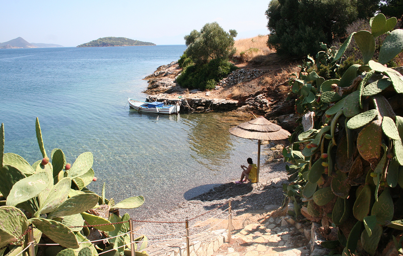 Ο επισκέπτης εδώ θα συναντήσει το μικρό γραφικό λιμανάκι, μια μαρίνα, μια εκκλησία, λιγοστές ταβέρνες και τέσσερις παραλίες όλες κι όλες.