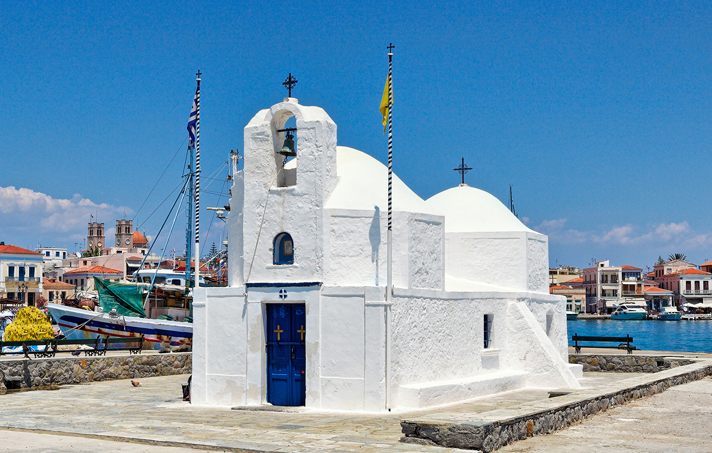 Το μικρό πάλλευκο εκκλησάκι του Αγίου Νικολάου στην είσοδο του λιμανιού υποδέχεται τους επισκέπτες. Γύρω γύρω ψαροκάικα σε διάφορα χρώματα συνθέτουν ένα πολύχρωμο παζλ, που όντως… επιπλέει στον αφρό της γαλάζιας θάλασσας. Σκάφη και ιστιοπλοϊκά επαναφέρουν το βλέμμα στο σήμερα, ενώ στο background δεσπόζουν επιβλητικά τα νεοκλασικά κτίρια, που αναδίδουν ακόμα και σήμερα την αίγλη τους.