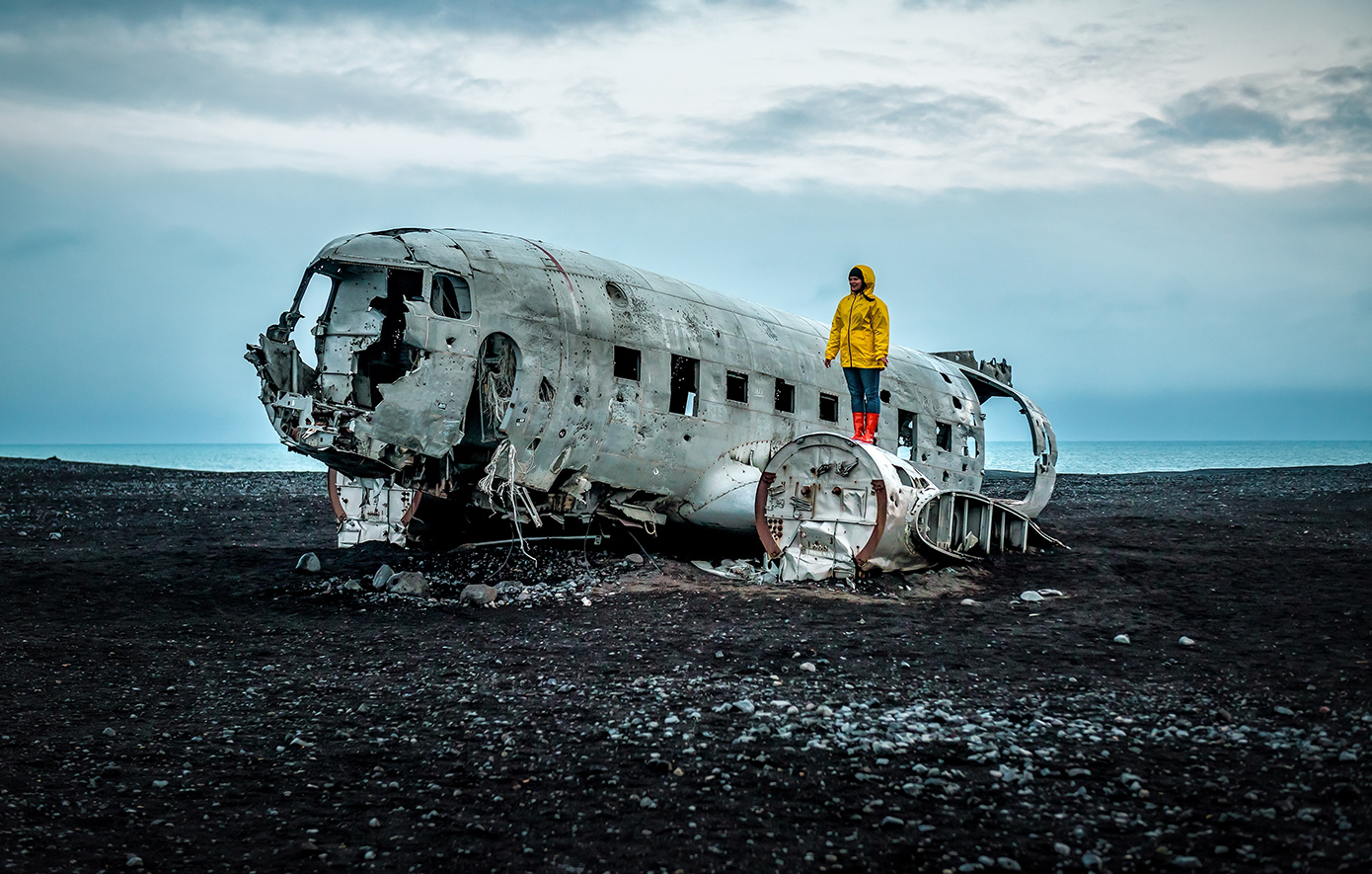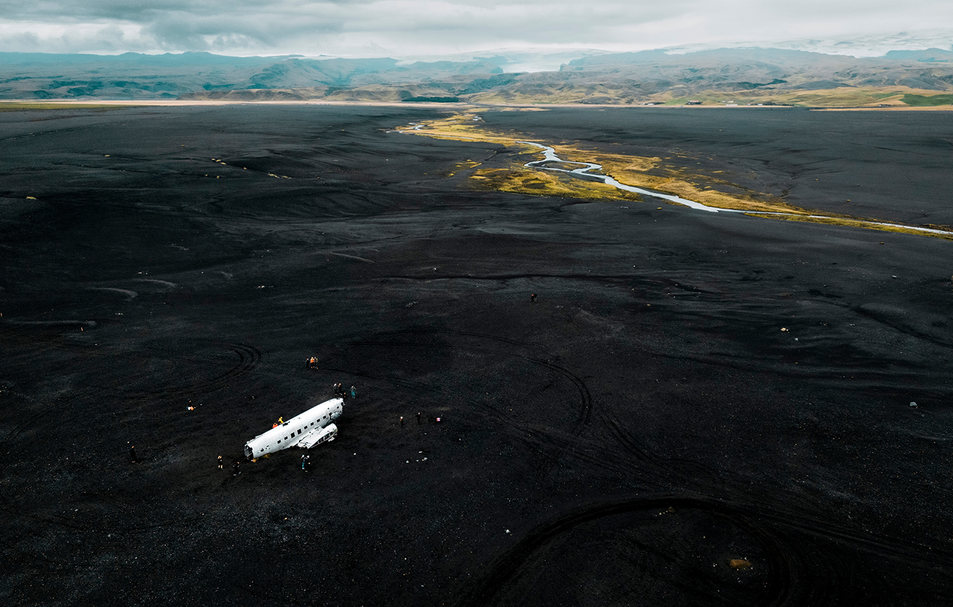 Μία από αυτές τις μαύρες παραλίες της Ισλανδίας, είναι και η Sólheimasandur, η οποία συγκεντρώνει πολλούς επισκέπτες, τόσο για το απόκοσμο τοπίο που την περιβάλλει, όσο και για το κουφάρι ενός αεροπλάνου που δεσπόζει στο μέρος. Εξάλλου, η παραλία έγινε γνωστή στον περισσότερο κόσμο, μετά τη συντριβή του στρατιωτικού αεροπλάνου, US Navy Douglas C-117D το 1973, με τα συντρίμμια του να έχουν παραμείνει άθικτα ως και σήμερα.