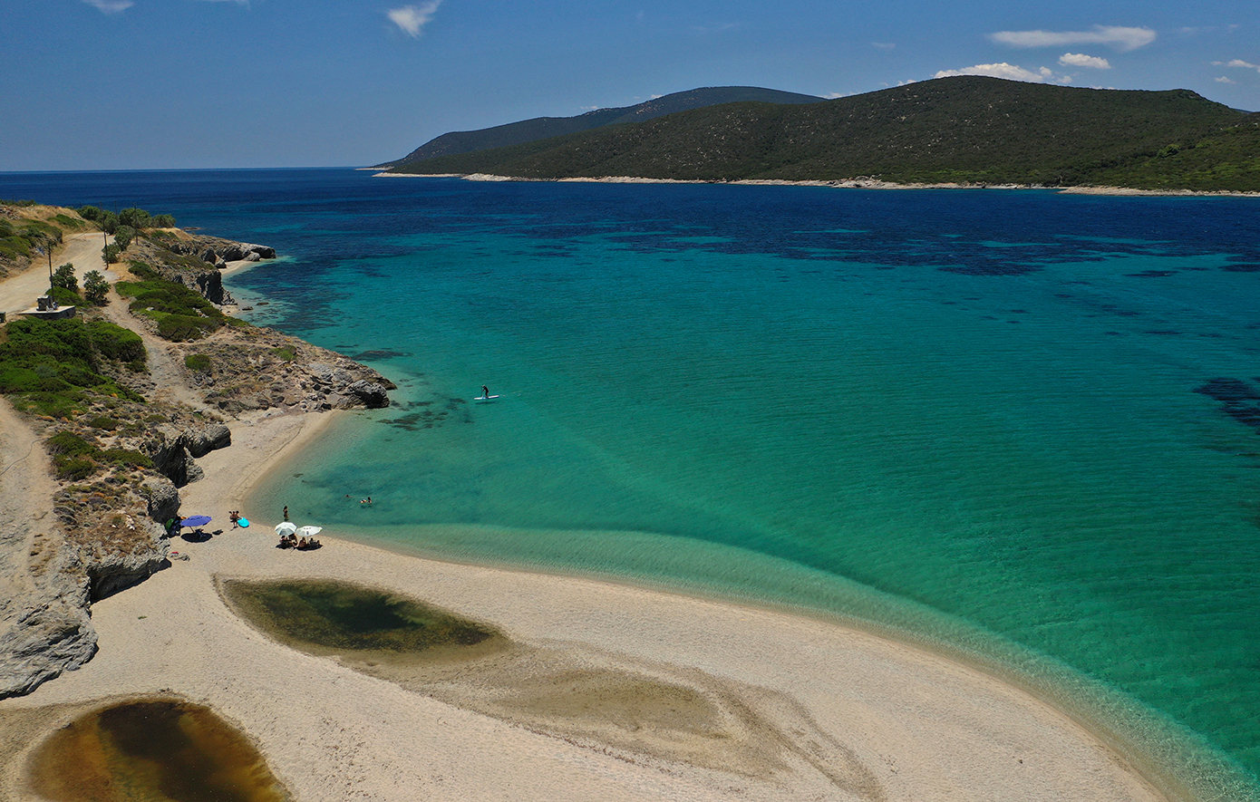Η άκρως εντυπωσιακή εικόνα της με τη χρυσαφένια αμμόγλωσσα να διεισδύει στα γαλαζοπράσινα νερά παραπέμπει σε εξωτικές εικόνες, δημιουργώντας έντονο θαυμασμό με την απίστευτου κάλλους ομορφιά της. Πρόκειται για μια ονειρική ακρογιαλιά, σημείο αναφοράς για τους λάτρεις του windserfing ή kitesurfing.