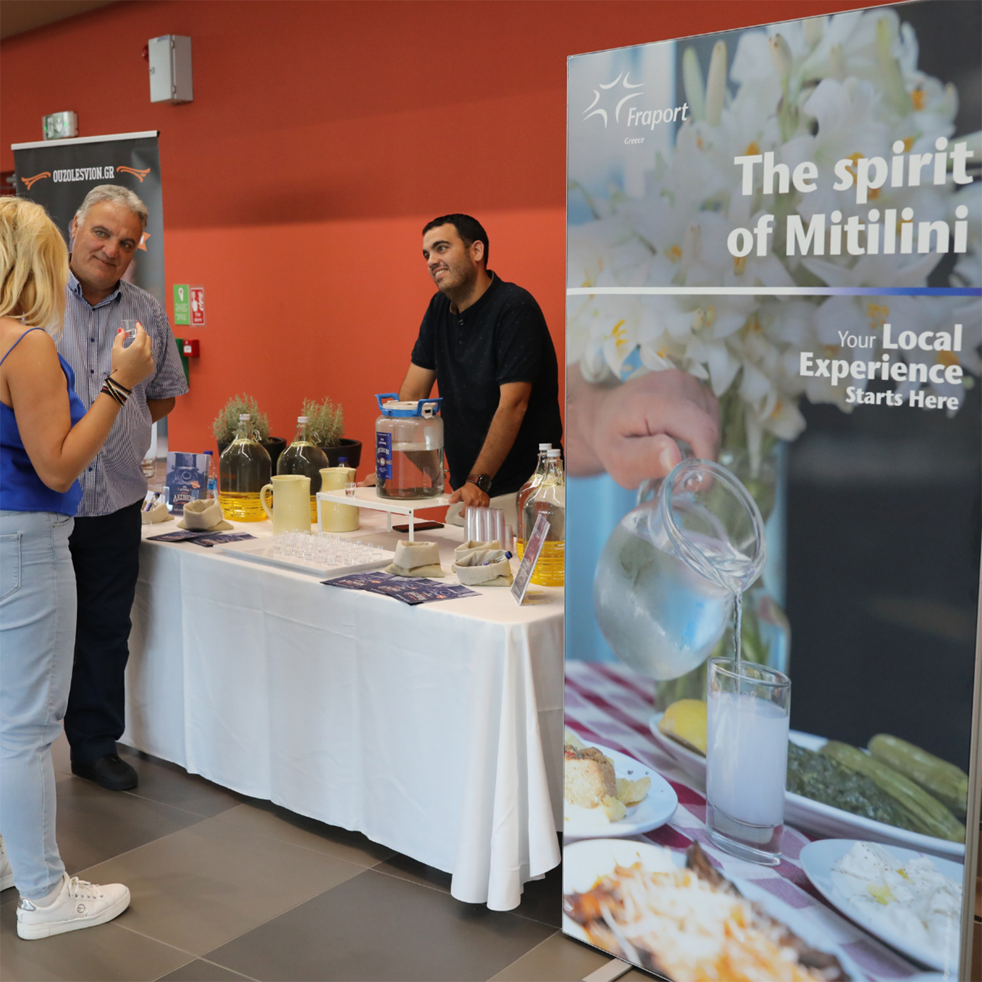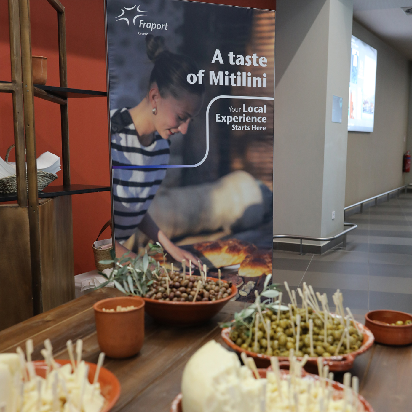 Μάλιστα, η Fraport Greece πραγματοποίησε εκδήλωση στο Αεροδρόμιο Μυτιλήνης «Οδυσσέας Ελύτης» για την ανάδειξη των εμπειριών που προσφέρει το νησί στους επισκέπτες του, εμπνευσμένη από τα ιδιαίτερα χαρακτηριστικά του προορισμού και την τοπική γαστρονομία