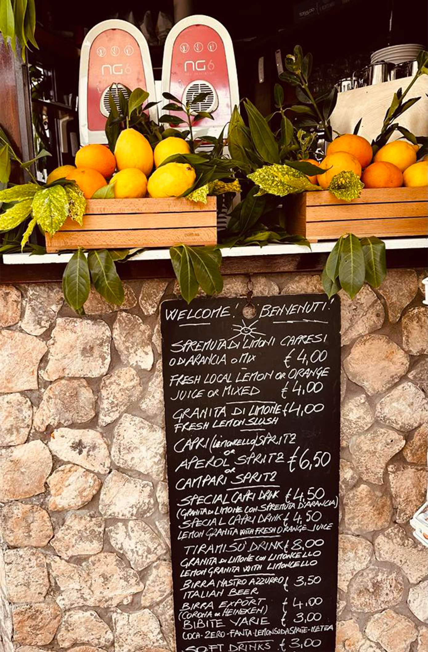 Συνεχίζοντας τη περιήγησή μας στο Ανακάπρι, δεν παραλείψαμε να δοκιμάσουμε την παραδοσιακή γρανίτα λεμόνι από τα πέτρινα κιόσκια στο δρόμο προς τα σκαλάκια, ένα από τα view points του πανέμορφου χωριού. Οι λάτρεις της φωτογραφίας θα χαζέψουν από ψηλά τα αμέτρητα λευκά σκαφάκια που βρίσκονται στον μικρό σκούρο μπλε κόλπο του Κάπρι.