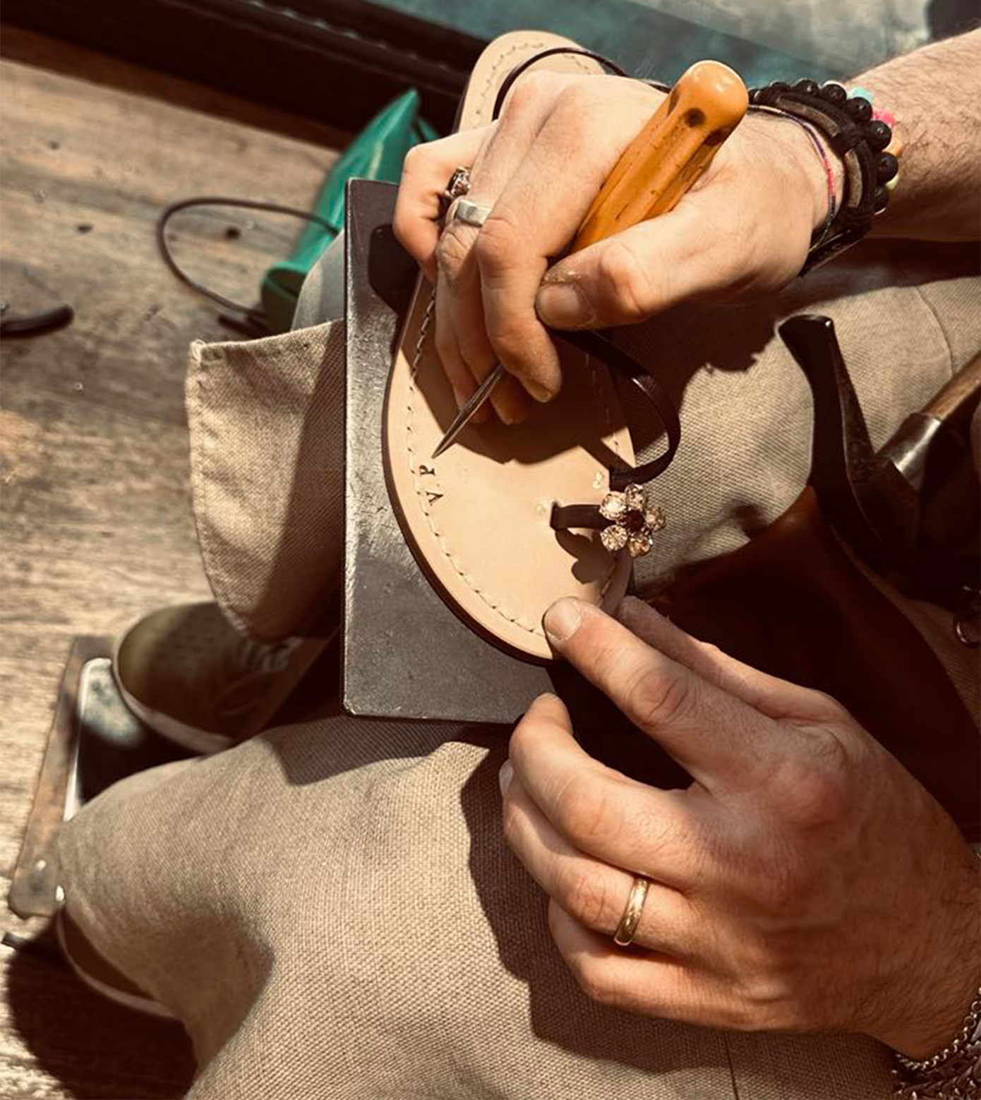 Εκεί ο Μικέλε φτιάχνει το σανδάλι ακριβώς στο πόδι σου. Επί τόπου και σε πραγματικό χρόνο. Τον ρωτήσαμε, αν «κληρονόμησε» τη δουλειά από τον μπαμπά ή τον παππού του. Όμως, σίγουρα δεν περιμέναμε την απάντησή του. «Κάνω αυτή τη δουλειά 18 χρόνια. Ήταν η δουλειά του πεθερού μου», μάς είπε χαρακτηριστικά. Όσο περιμέναμε να ολοκληρωθεί το σανδάλι, μάς κέρασαν μπισκοτάκια με γεύση λεμόνι, λευκή σοκολάτα, φιστίκι, καθώς και ένα «σφηνάκι» γευστικό λιμοντσέλο από το Nino & Friends, που θα συναντήσετε και σε όλη την Costiera Amalfitana.