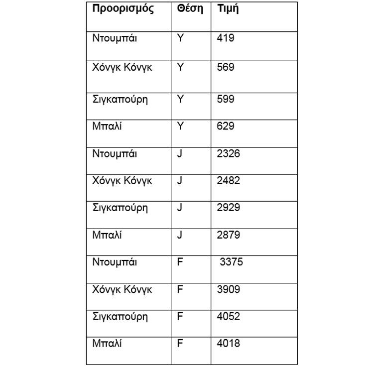 Ακολουθούν οι προσφορές για τους παρακάτω ενδεικτικούς προορισμούς: