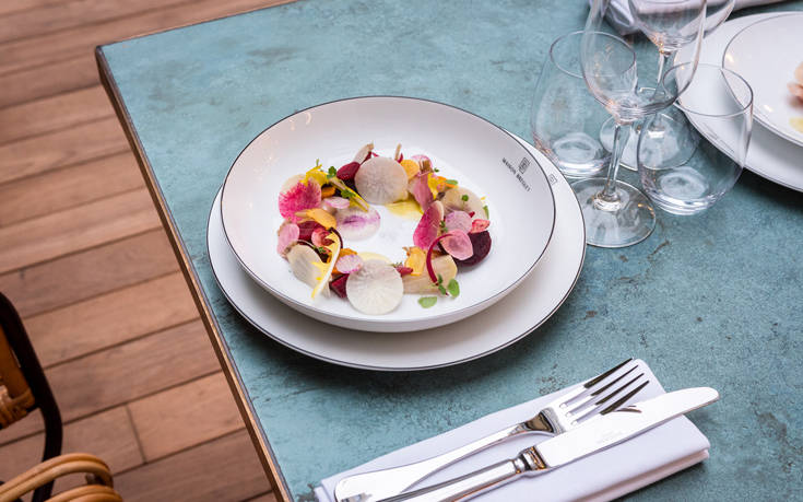 Ο σεφ Giulian Maiuri και η ομάδα του προσφέρουν ευχάριστες προτάσεις της δημιουργικής κουζίνας τις οποίες ο πελάτης μπορεί να απολαύσει στο μπαρ με θέα στην κουζίνα, τον κήπο ακόμη και στο Wine Room, έναν χώρο για ιδιωτικό δείπνο αφιερωμένο στο κρασί.