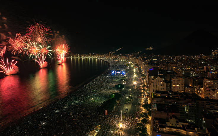 Πάνω από 2 εκατ. άνθρωποι μαζεύονται δηλαδή στα λίγα χιλιόμετρα της Κοπακαμπάνα για σαμπάνια, σάμπα και πυροτεχνήματα! Οι Βραζιλιάνοι κατεβαίνουν στην παραλία με τα λευκά τους, καθώς αυτό φέρνει τύχη την Πρωτοχρονιά, και αρχίζουν να κατακλύζουν το θρυλικό ξενοδοχείο Copacabana Palace, όπου λειτουργεί και ως κεντρική συναυλιακή σκηνή.