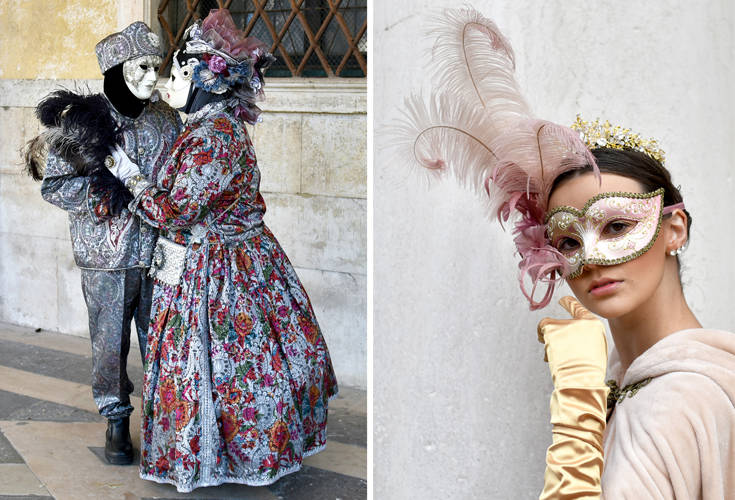 Στολές εποχής και μάσκες πραγματικά κομψοτεχνήματα στα όσα χαρακτηρίζουν την ενδυμασία των καρναβαλιστών που παίρνουν μέρος σε αυτή τη βενετσιάνικη μαγεία. Απόλυτη πρωταγωνίστρια η περίφημη και κεντρικότατη Πλατεία του Αγίου Μάρκου, η οποία κάθε κόσμο τέτοια περίοδο κατακλύζεται από αμέτρητους καρναβαλιστές.