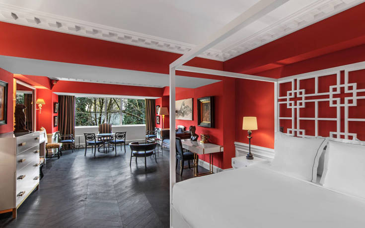 Από τα συνολικά 75 δωμάτια τα 35 είναι σουίτες, που περισσότερο δίνουν την εντύπωση ότι ο πελάτης έχει επισκεφτεί ένα πριβέ κλαμπ, παρά ότι βρίσκεται σε δωμάτιο ξενοδοχείου. Έντονα χρώματα, έπιπλα αντίκες, εντυπωσιακές ταπετσαρίες, στα βασικά χαρακτηριστικά τους με τις περισσότερες από αυτές να κάνουν αναφορές σε διάσημους εκπροσώπους της Παριζιάνικης ελίτ όπως η Coco Chanel.