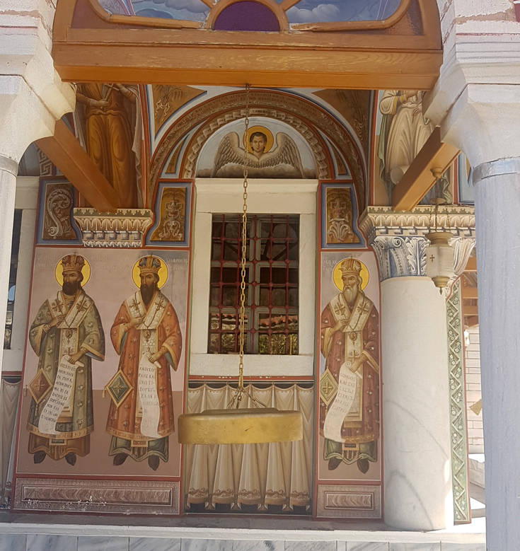 Οι ολάνθιστες γλάστρες στο μαρμάρινο περίβολο του μοναστηριού και τα φυτεμένα παρτέρια ευωδιάζουν και ομορφαίνουν με τα χρώματά τους αυτόν τον ιερό τόπο, την ησυχία του οποίου διαταράσσουν μόνο οι ήχοι των βυζαντινών ύμνων που αποδίδουν οι μοναχές και το κελάηδημα των πουλιών.