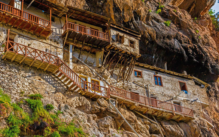 Μεταξύ της γραφικής Στεμνίτσας και της Δημητσάνας στην ορεινή Αρκαδία, η ιστορική μονή του Τιμίου Προδρόμου είναι «ριζωμένη» στη βάση ενός βράχου στο φαράγγι του Λούσιου και κόβει την ανάσα σε όσους σηκώσουν τα μάτια τους για να παρατηρήσουν την περιοχή. Ιδρύθηκε τον 12ο αι. και από το μπαλκόνι της απολαμβάνετε άπλετης θέας στην άγρια ομορφιά του φαραγγιού. Εντυπωσιακές και οι αγιογραφίες και οι τοιχογραφίες τόσο εντός όσο και εκτός του ναού.