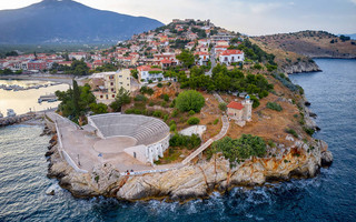 Το όνομά του το οφείλει στο σχήμα του λόφου «Νησί» που βρίσκεται δίπλα στο λιμάνι, και το οποίο θυμίζει άστρο. Η θέα πάνω από τον λόφο είναι μαγευτική και στην κορυφή δεσπόζει μεσαιωνικό φρούριο. Γραφικά δρομάκια και παραδοσιακή αρχιτεκτονική δίνουν τον «τόνο» στον όμορφο οικισμό και στο λιμάνι του δένουν ταχύπλοα, αλιευτικά και καΐκια.
