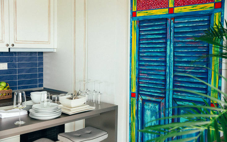 Οι εσωτερικοί χώροι διακοσμημένοι με μοντέρνα στοιχεία αλλά και έθνικ, παραδοσιακές πινελιές είναι ιδανικοί για χαλάρωση και ηρεμία, έχοντας παράλληλα έναν ιδιαίτερο χαρακτήρα.