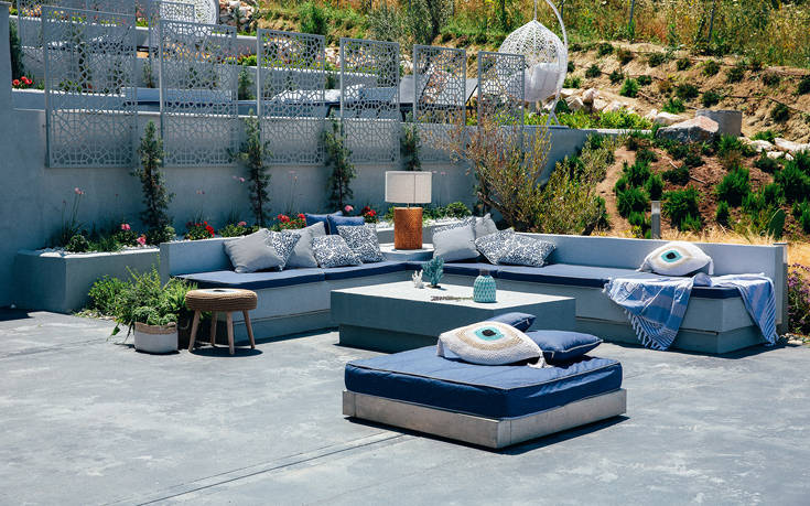 Με υλικά φιλικά προς το περιβάλλον, όπως η πέτρα κι ο κυβόλιθος, και με φυτεμένα δέντρα σε θέσεις που προσφέρουν τη μέγιστη δυνατή σκίαση, όλοι θα νιώσουν ότι ο εξωτερικός χώρος αποτελεί μία προέκταση της κατοικίας, αφήνοντας τον επισκέπτη να γνωρίσει και να ζήσει σε ένα αντιπροσωπευτικό ελληνικό ξηροφυτικό τοπίο.