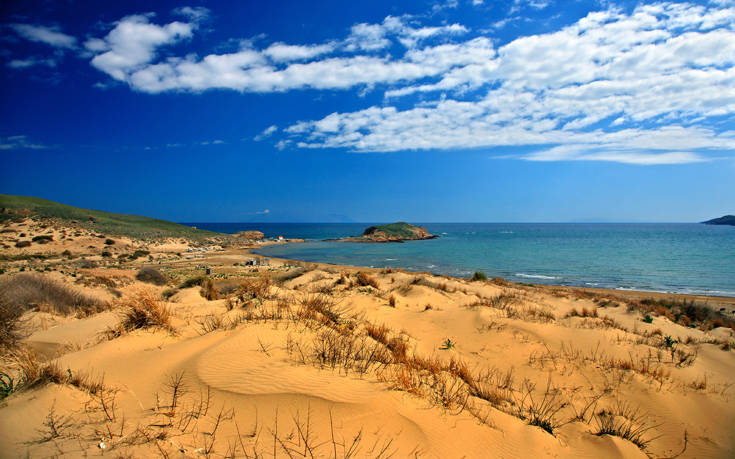 Ο λόγος για τις περίφημες Αμμοθίνες, που θυμίζουν πολύ τις αφρικανικές ερήμους, και συναντώνται κοντά στο χωριό Κατάλακκος και την παραλία Γομάτι.