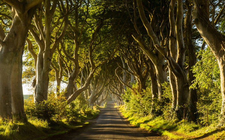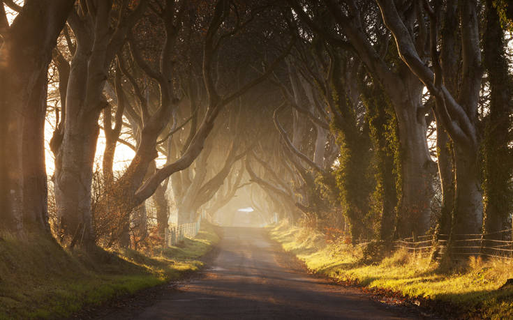 Οι λάτρεις της δημοφιλούς τηλεοπτικής σειράς Game of Thrones θα αναγνωρίσουν σίγουρα την εικόνα ως το «Kingsroad». Αυτός ο «σκοτεινός» δρόμος που είναι καλυμμένος από οξιές και βρίσκεται κατά μήκος του δρόμου Bregagh μεταξύ Armoy και Stranocum στην κομητεία Antrim, αποτελεί ένα από τα πιο πολυφωτογραφημένα σημεία στη Βόρεια Ιρλανδία.
