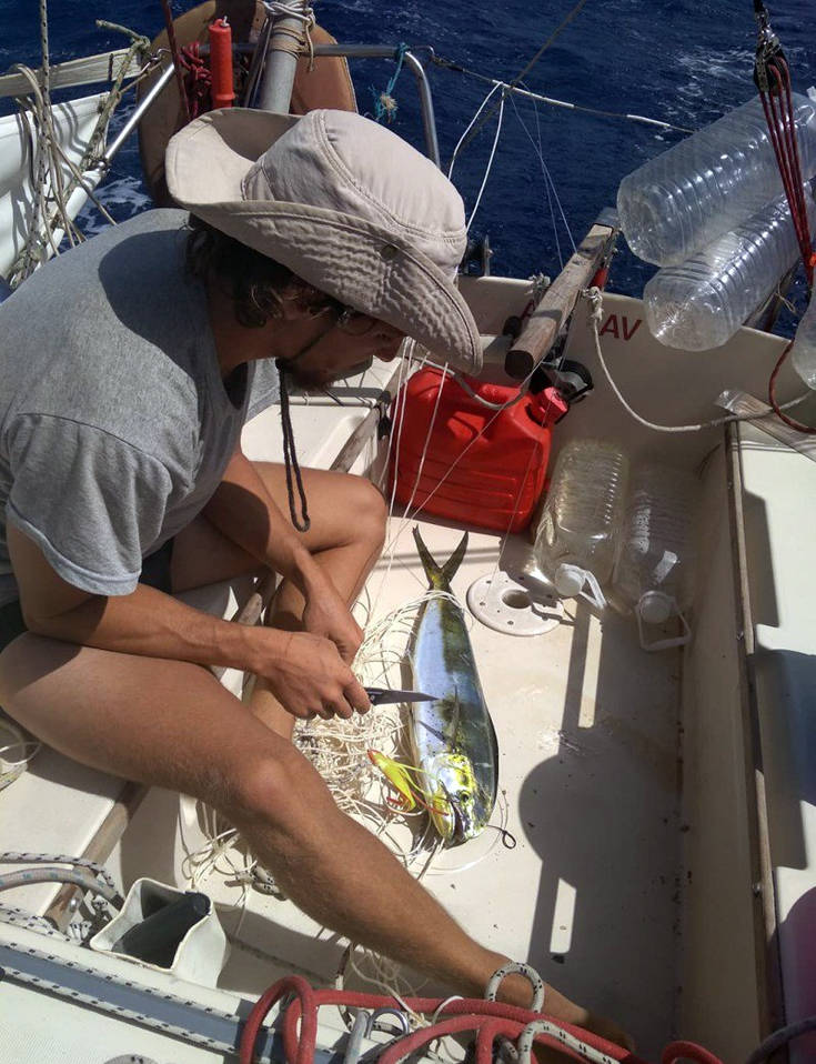 Επίσης με το νερό υπάρχει μεγάλο πρόβλημα. Το σκάφος μπορεί να φορτώσει αρκετό φαγητό για 6 μήνες ( και για 3 μήνες τώρα που είμαστε 2 άτομα) αλλά από νερό μπορούμε να έχουμε μαζί μας μόνο 250 λίτρα. Αυτά τα 250 λίτρα πρέπει να φτάσουν για όσο κρατήσει το ταξίδι από 10 μέρες έως 40 μέρες. Και εκεί είναι η πραγματική δυσκολία».