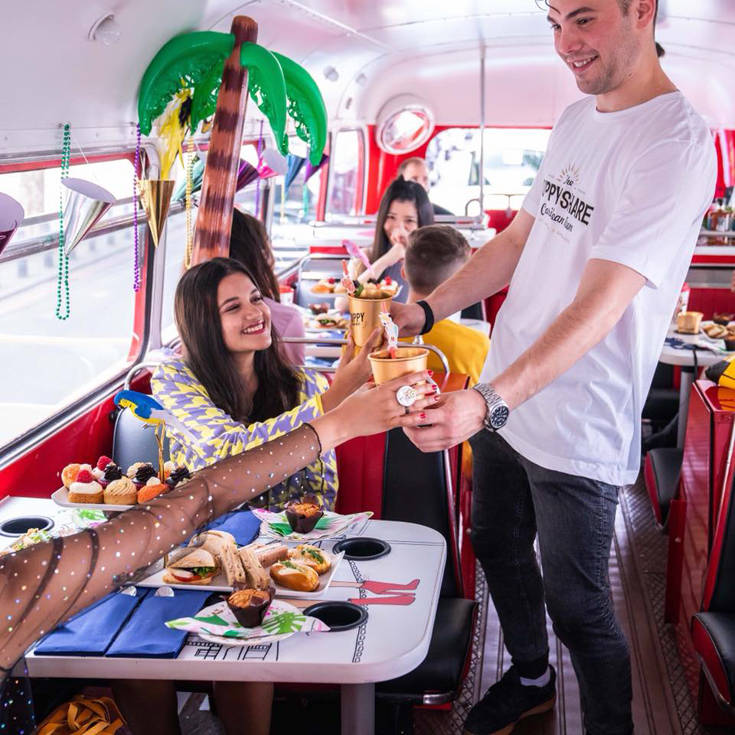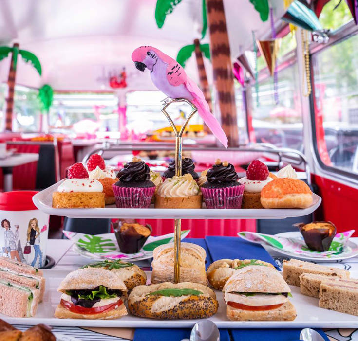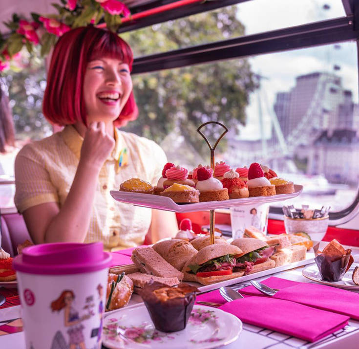 Ένα υπέροχο φλιτζάνι τσάι με εξαιρετικά και άκρως γευστικά συνοδευτικά από τη γαλλική κουζίνα –σάντουιτς, κέικ, γλυκά– κρατάει συντροφιά στους επιβάτες του λεωφορείου, όση ώρα αυτό κινείται στους πιο κεντρικούς δρόμους της ευρωπαϊκής μητρόπολης περνώντας μπροστά από τα σημαντικότερα ορόσημα του Λονδίνου.
