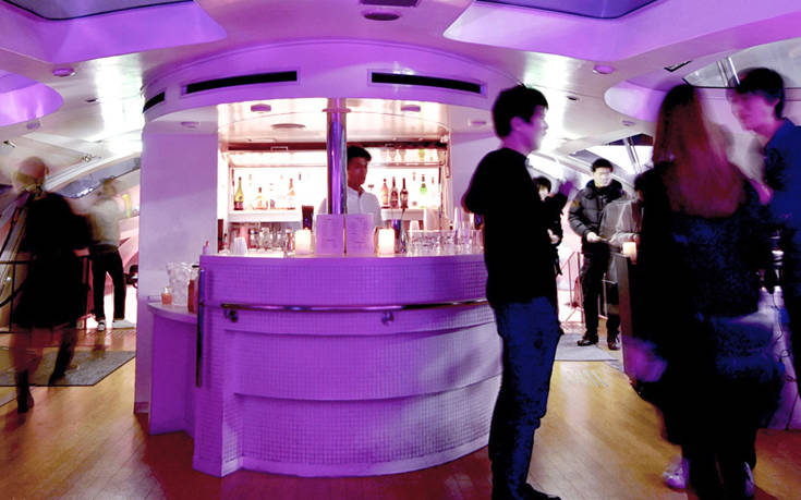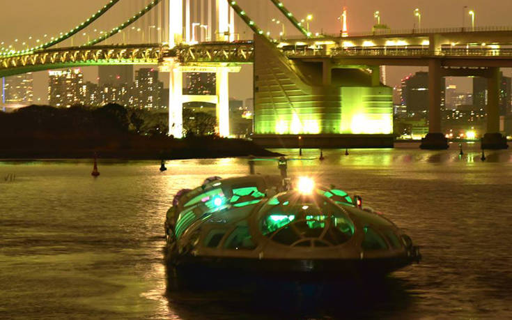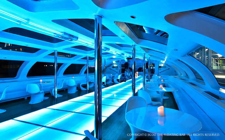 Οι επισκέπτες της ιαπωνικής πρωτεύουσας που θα επιβιβαστούν στο σούπερ μοντέρνο μπαρ– κρουαζιερόπλοιο -είναι σχεδιασμένο από τον σχεδιαστή καρτούν και μάνγκα Leiji Matsumoto- θα απολαύσουν το ποτό τους μέσα σε ένα άκρως φουτουριστικό σκηνικό με νέον φωτισμούς και djs να δίνουν το ρυθμό με amdient και deep house μουσικές.