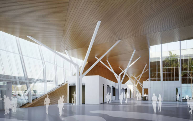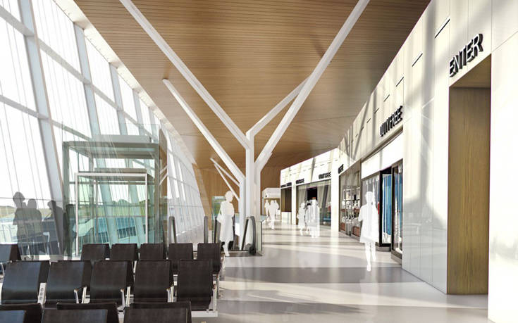Τα πάνελ λευκού αλουμινίου, μάλιστα, εκτός από το αισθητικό κομμάτι εξυπηρετούν και στην «αυτοσκίαση» του αεροδρομίου, η οποία επιτυγχάνεται με την αντανάκλαση του φωτός.