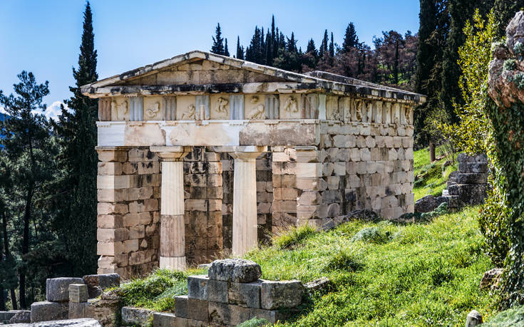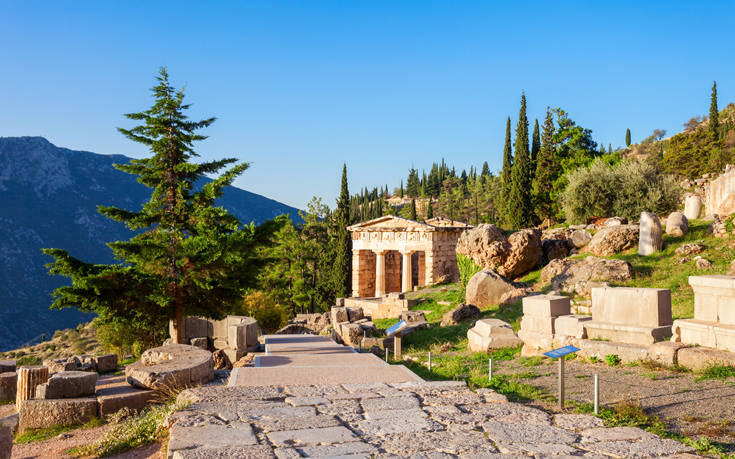 Στους Δελφούς, σύμφωνα με τη μυθολογία, συναντήθηκαν οι δύο αετοί που έστειλε ο Δίας από τα άκρα του σύμπαντος για να βρει το κέντρο του κόσμου. Για πολλούς αιώνες αποτελούσαν πνευματικό και θρησκευτικό κέντρο, καθώς και σύμβολο της ενότητας του αρχαίου ελληνισμού.