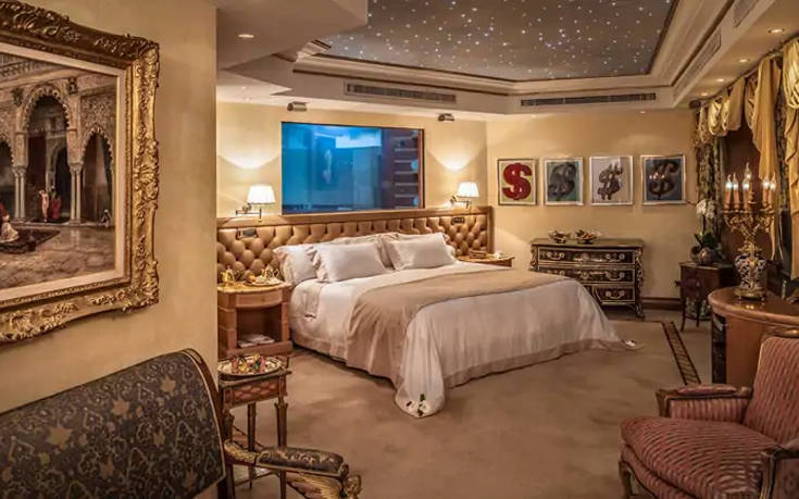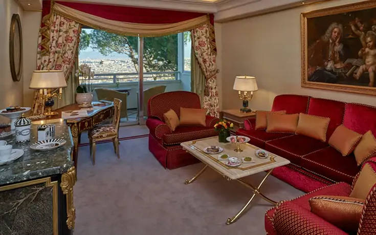 Το ίδιο σκηνικό επικρατεί και στα 370 δωμάτια, με τα βελούδα και τα μετάξια και τα φύλλα χρυσού να κάνουν τη διαφορά σε όρους κλασικής κομψότητας.