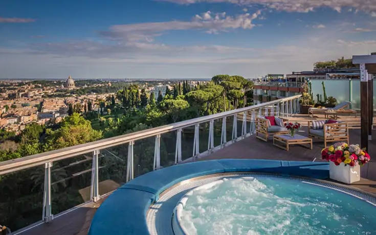 Μέλος της αλυσίδας Waldorf Astoria, το resort επιβλέπει διακριτικά το κέντρο της Αιώνιας Πόλης από ασφαλή απόσταση, προσφέροντας λάμψη, μεγαλεία και υπηρεσίες αντάξιες της φήμης του.