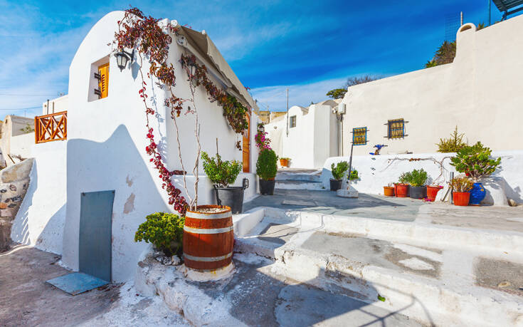 Συναντάται σε απόσταση 12 χλμ. από τα Φηρά, στο νότιο τμήμα του νησιού, και παλαιότερα το Εμπορείο ή Νημποριός αναφερόταν ως το εμπορικό κέντρο της Σαντορίνης.