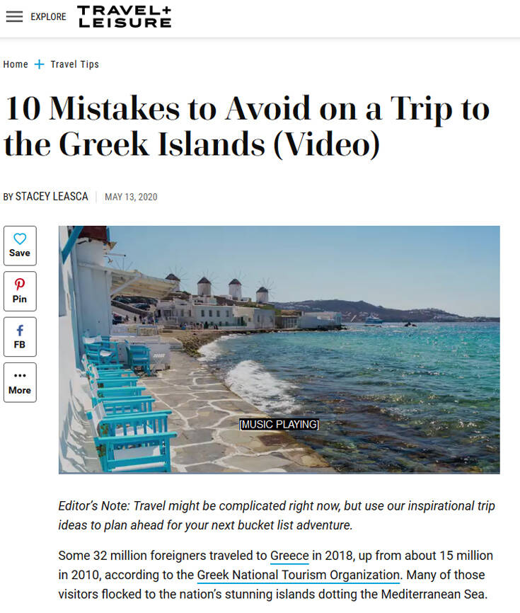 Το αμερικάνικο ταξιδιωτικό περιοδικό Travel+Leisure δημοσίευσε στην ιστοσελίδα του πριν λίγες μέρες ένα άρθρο- οδηγό για όσους επισκεφτούν τα ελληνικά νησιά αυτό το καλοκαίρι.