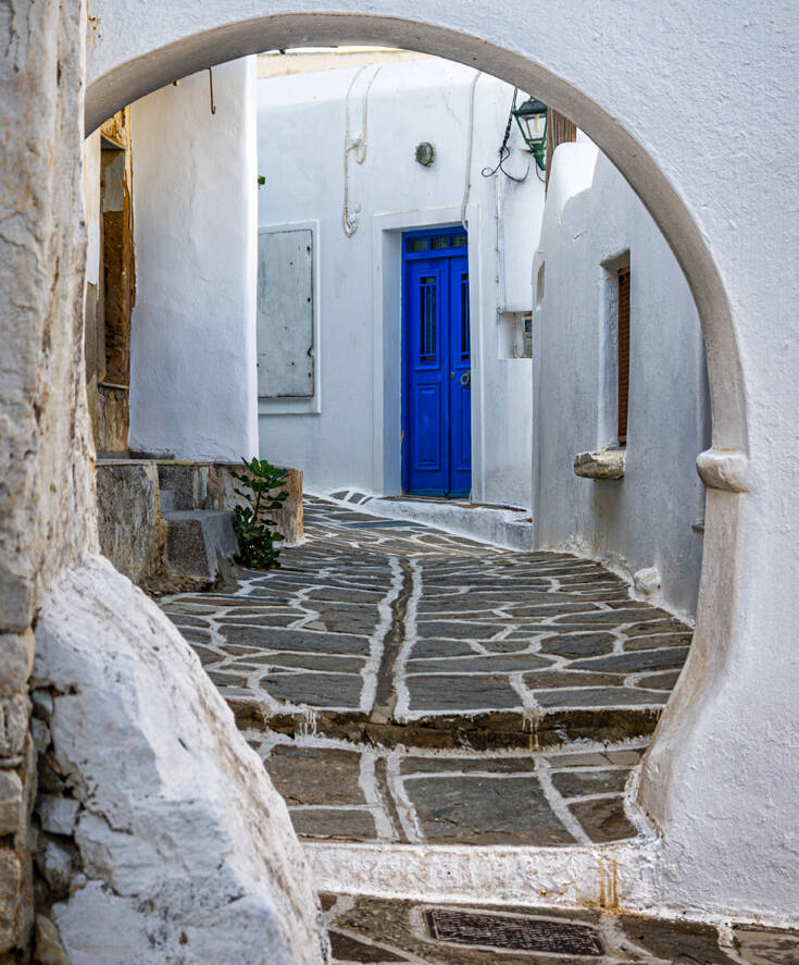 Ανάμεσα στα πάλλευκα, κουκλίστικα σοκάκια με τα κυκλαδιτικα σπίτια, τα χρωματιστά πορτοπαράθυρα και τα ολάνθιστα λουλούδια, ξεπροβάλλουν πολλά γραφικά εκκλησάκια που χρονολογούνται από τον 17ο και 18ο αιώνα, καθώς και χαρακτηριστικοί ανεμόμυλοι.