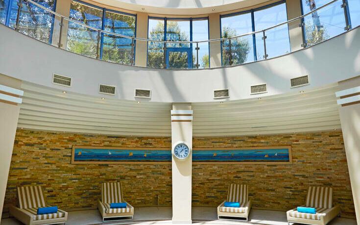 Στο βραβευμένο Spa Center αναζωογονηθείτε με εξειδικευμένες θεραπείες ευεξίας και αναδείξτε το μαύρισμα σας με τα πιο hot summer spa packages. Προσφέρεται δωρεάν χρήση του γυμναστηρίου και της εσωτερικής πισίνας (ενήλικες) και δωρεάν χρήση Sauna, Hammam και Jacuzzi (για τους διαµένοντες σε Junior Suites)