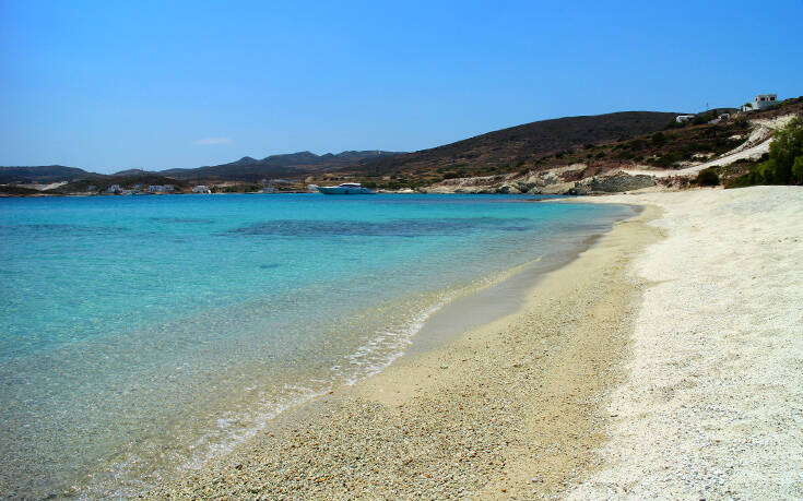 Βρίσκεται στο βορειοανατολικό τμήμα, σε απόσταση περίπου 5 χλμ. από τη Χώρα και 8 χλμ. από το λιμάνι του νησιού, και διακρίνεται για την λευκή, χοντρή άμμο, τα υπέροχα γαλαζοπράσινα, σαν ψεύτικα νερά και την θέα που σου μένει στο μυαλό.