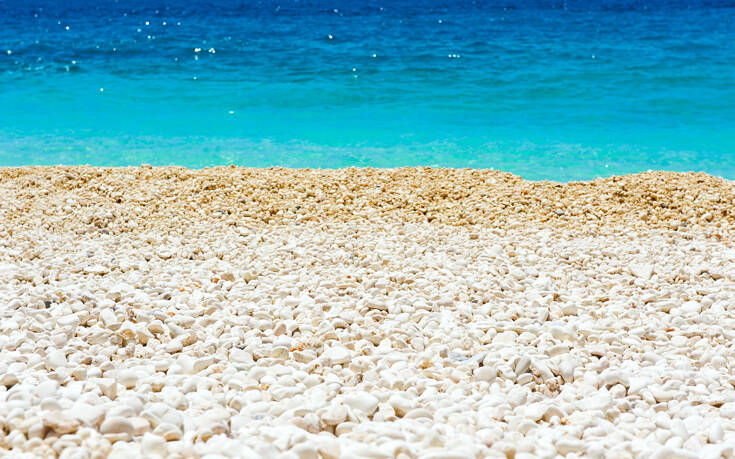 Τα νερά, όπως θα τα περίμενε κανείς, έχουν αυτό το υπέροχο γαλάζιο χρώμα του Ιονίου, το οποίο φαίνεται ακόμη πιο καθαρό λόγω του λευκού βότσαλου, μέσα και έξω από την θάλασσα.