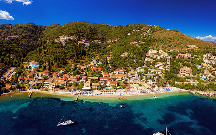 Εκεί, το καταπράσινο τοπίο κατηφορίζει προς την ακτή, ακουμπώντας σχεδόν τα ονειρικά νερά του Ιονίου, δημιουργώντας ένα μοναδικό σκηνικό που μένει πραγματικά αξέχαστο.