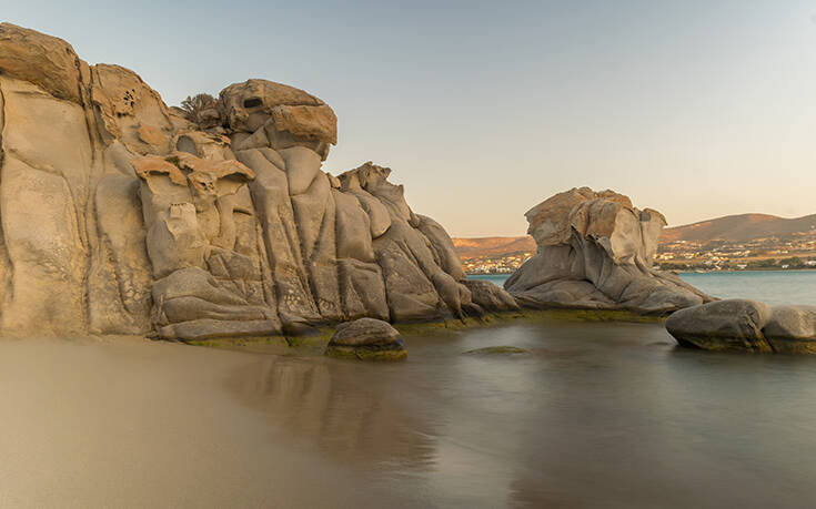 Σμιλεμένοι επί χιλιετίες από την αλμύρα, το νερό και το αγέρι, οι γρανιτένιοι όγκοι φτάνουν ως την ακροθαλασσιά και σχηματίζουν μια σειρά από διαδοχικές παραλίες που είναι χάρμα οφθαλμών ως ένα εξόχως ιδιοσυγκρασιακό γεωλογικό φαινόμενο.