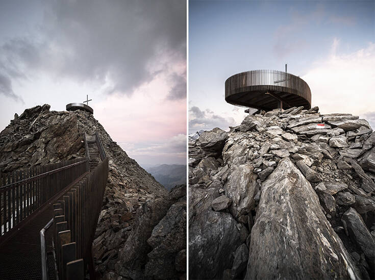 Η πλατφόρμα είναι προσβάσιμη μέσα σε μόλις δέκα λεπτά και οι επισκέπτες μπορούν να παρακολουθήσουν την ανατολή και το ηλιοβασίλεμα πάνω από τις κορυφές των βουνών. Η κορυφή του παγόβουνου βρίσκεται σε απόσταση αναπνοής, μόλις 50 μέτρα χωρίζουν την κατασκευή από αυτήν, ενώ η εκπληκτική θέα στο τοπίο με τις χιονισμένες βουνοκορφές κάνει το χρόνο στην κυριολεξία να… παγώσει!
