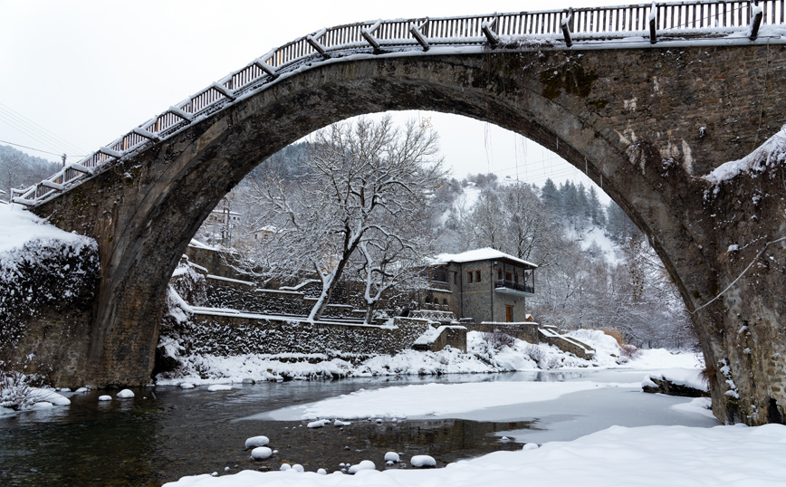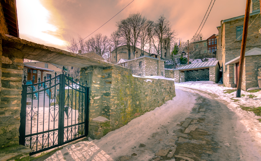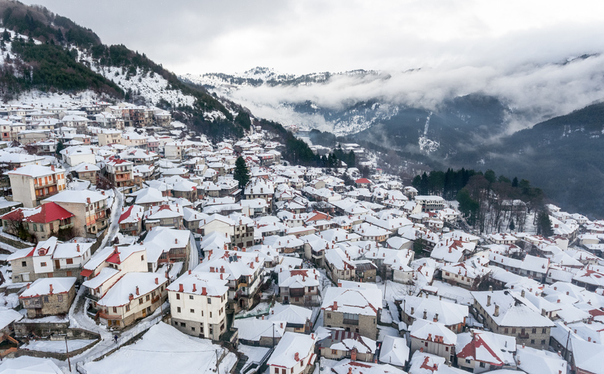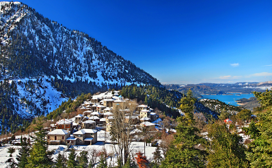 Αντικρίζοντας κανείς τα ολόλευκα τοπία καλυμένα από το βελούδινο πέπλο του χιονιού δεν μπορεί παρά να συμφωνήσει πως ο χειμώνας στην Ελλάδα ταιριάζει πολύ. Τι κι αν το κρύο είναι τσουχτερό; Μια εικόνα είναι αρκετή για να σου φτιάξει τη διάθεση και να σου υπενθυμίσει πόσο όμορφη είναι η ζωή. Και το ταξίδι. Στα χωριά που ακολουθούν, παρόλο που η γραφικότητα αποτελεί το κυρίαρχο και πιο χαρακτηριστικό τους στοιχείο σε όλη τη διάρκεια του χρόνου, την εποχή που διανύουμε τη σκυτάλη παίρνει το όνειρο και η μαγεία που δημιουργείται στο αντίκρισμα των χιονισμένων τοπίων.