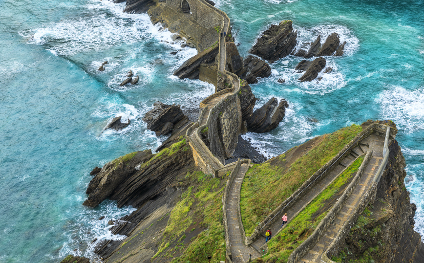 Οι αμετανόητοι λάτρεις της επιτυχημένης τηλεοπτικής σειράς «Game of Thrones» το αναγνωρίζουν σίγουρα ως το βασίλειο Dragonstone από τον έβδομο κύκλο της σειράς. Ωστόσο, η «θνητή» ονομασία του είναι San Juan de Gaztelugatxe. Το μικροσκοπικό νησάκι με το άκρως δραματικό τοπίο συναντάται έξω από την ακτή κατά μήκος του κόλπου του Biscay και 35 χιλιόμετρα ανατολικά από το Μπιλμπάο, στο βόρειο τμήμα της Ισπανίας και διακρίνεται για την χαρακτηριστική πέτρινη γέφυρα με τα 237 σκαλοπάτια με την οποία ενώνεται με την υπόλοιπη ηπειρωτική χώρα.
