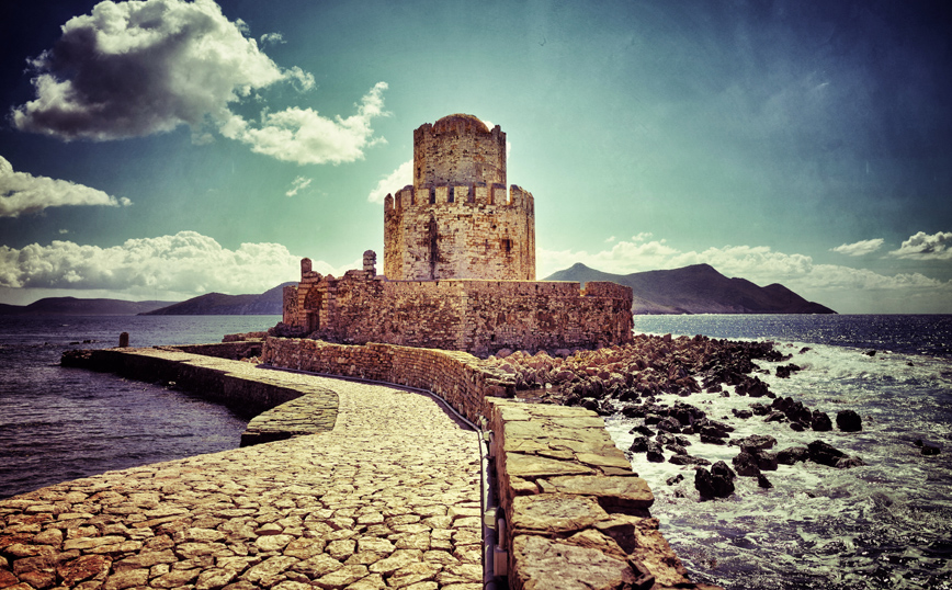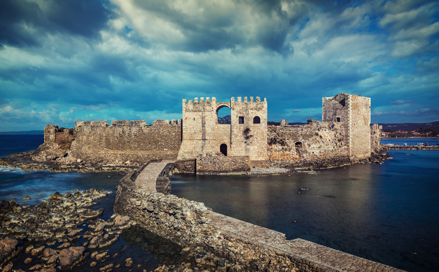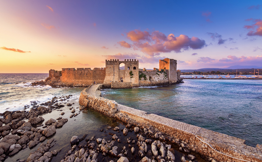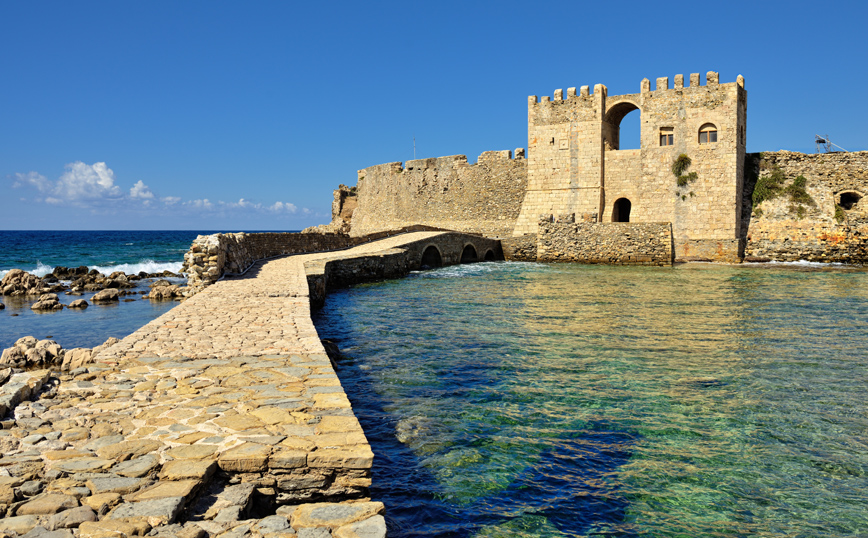 Χτισμένο το 1209 από τους Ενετούς, στο νοτιοδυτικότερο άκρο της Πελοποννήσου, το Κάστρο της Μεθώνης είναι ένα από τα μεγαλύτερα οχυρωματικά έργα της Μεσογείου, καταλαμβάνοντας μια έκταση περίπου 93 στρεμμάτων. Οι τρεις πλευρές του κάστρου βρέχονται από τη θάλασσα, ενώ η βόρεια είναι εκείνη που το συνδέει με την ξηρά, η οποία μάλιστα είναι ισχυρά οχυρωμένη από μία ακρόπολη.