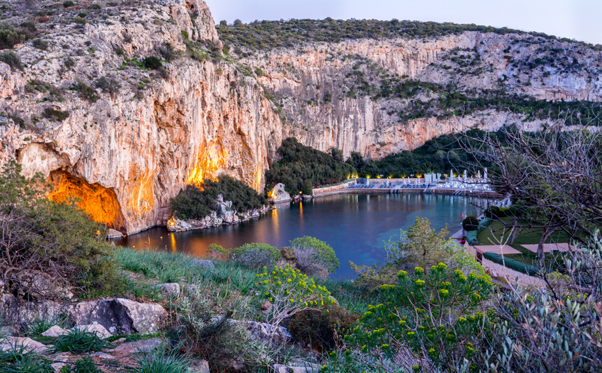 Ο επιβλητικός βράχος, τα ιαματικά νερά, οι δαιδαλώδεις υποβρύχιες σήραγγες και η καταπράσινη βλάστηση συνθέτουν ένα μοναδικό φυσικό αξιοθέατο -μια ανεπανάληπτη εμπειρία. Το υφάλμυρο νερό της λίμνης αναβλύζει από πηγές βάθους 50-100 μέτρων, η θερμοκρασία του νερού παραμένει σταθερή από 21-27°C, ενώ η στάθμη της παραμένει πάντα 50 εκατ. ψηλότερα από εκείνη της θάλασσας για να ανανεώνεται συνεχώς από τις ιαματικές πηγές.