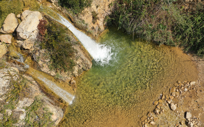 Ο μικρός αυτός καταρράκτης, ύψους περίπου 5-6 μέτρων, αλλάζει μορφή ανάλογα με τις βροχές. Όταν τα νερά λιγοστεύουν δημιουργούνται δύο δίδυμοι καταρράκτες, ενώ όταν βρέχει πολύ, το ρέμα μετατρέπεται σε δυνατό χείμαρρο.