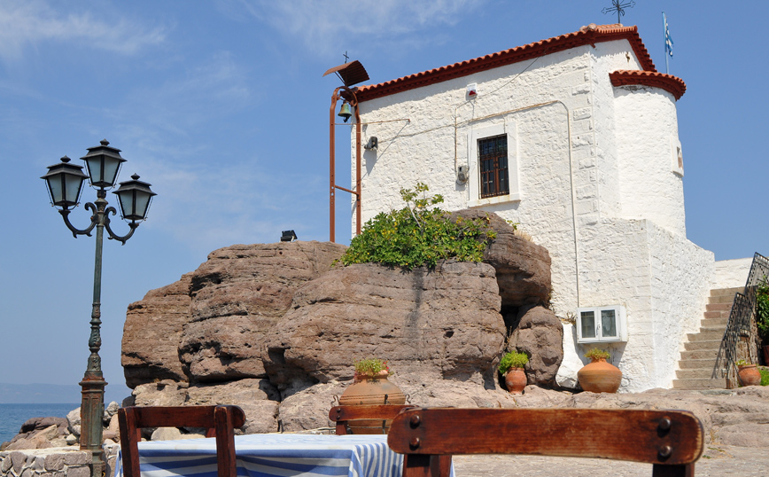 Υπάρχει ένα εκκλησάκι στην Ελλάδα που παρουσιάζει την Παναγία με τον πιο ανορθόδοξο τρόπο, αυτόν της Γοργόνας. Παρόλο που βρίσκεται στο μικρό λιμανάκι στη Σκάλα Συκαμιάς στη Λέσβο, οφείλει τη φήμη του στο ομότιτλο μυθιστόρημα του Στρατή Μυριβήλη.