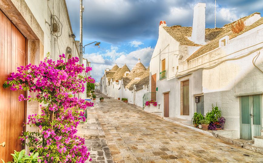 Στην επαρχία του Μπάρι, στο νοτιοανατολικό τμήμα της Ιταλίας, το Αλμπερομπέλο (στα ιταλικά σημαίνει όμορφο δέντρο) είναι γνωστό και ως η «πρωτεύουσα των τρούλων». Κι αυτό γιατί τα 1.500 περίπου σπίτια του, σκεπάζονται με τους χαρακτηριστικούς κωνικούς τρούλους που χρονολογούνται από τον 16ο αι. –μια εικόνα που κάνει τον γύρο του κόσμου άλλωστε.