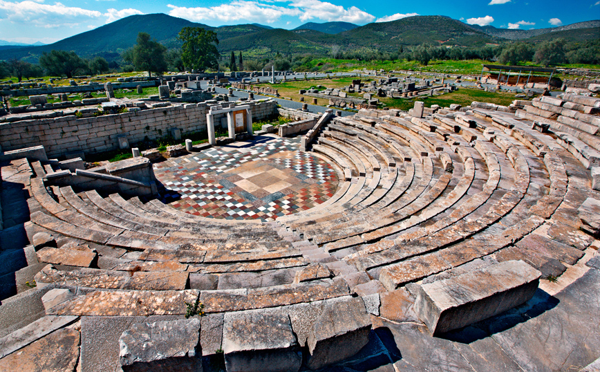 Τα πρώτα ευρήματα της αρχαίας πόλης, που οικοδομήθηκε το 369 π.Χ. από τον Θηβαίο στρατηγό Επαμεινώνδα, ξεκίνησαν να έρχονται στο φως της δημοσιότητας την περίοδο της Ελληνικής Επανάστασης, εκπλήσσοντας σταδιακά τους αρχαιολόγους και το κοινό. Η πόλη δημιουργήθηκε σύμφωνα με το ιπποδάμειο σύστημα στη διάταξη, σύμφωνα με το οποίο όλα τα κτήρια έχουν τον ίδιο προσανατολισμό. Ο χώρος χωρίζεται σε οριζόντιους και κάθετους άξονες, ενώ το τείχος της πόλης μετράει μήκος 9 χλμ. με δύο βασικές πύλες. Η μία ήταν η Αρκαδική (πύλη της Μεγαλόπολης) και η άλλη η Λακωνική.